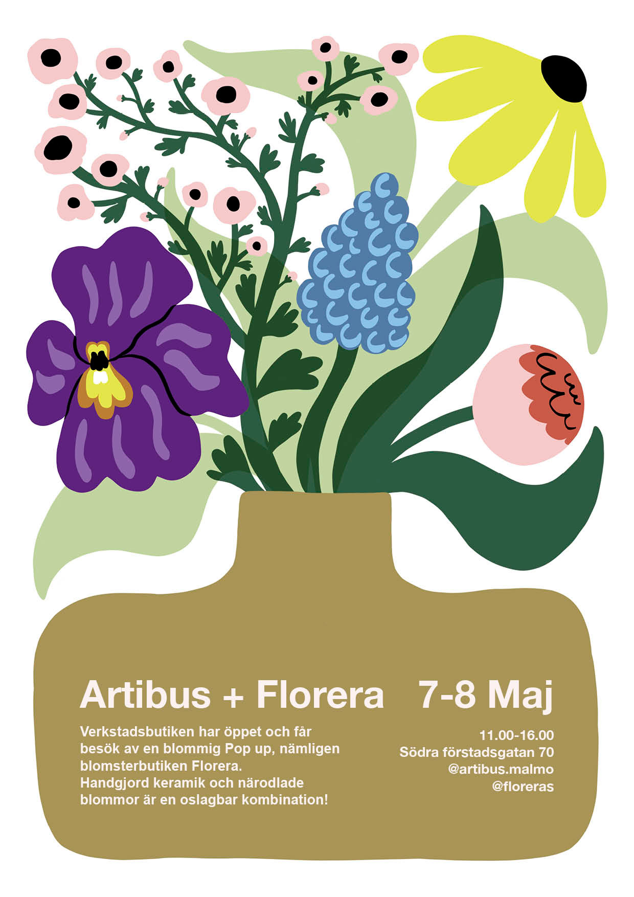 Poster illustration for the flower boutique Florera´s pop-up at the ceramic studio Artibus, 2022.